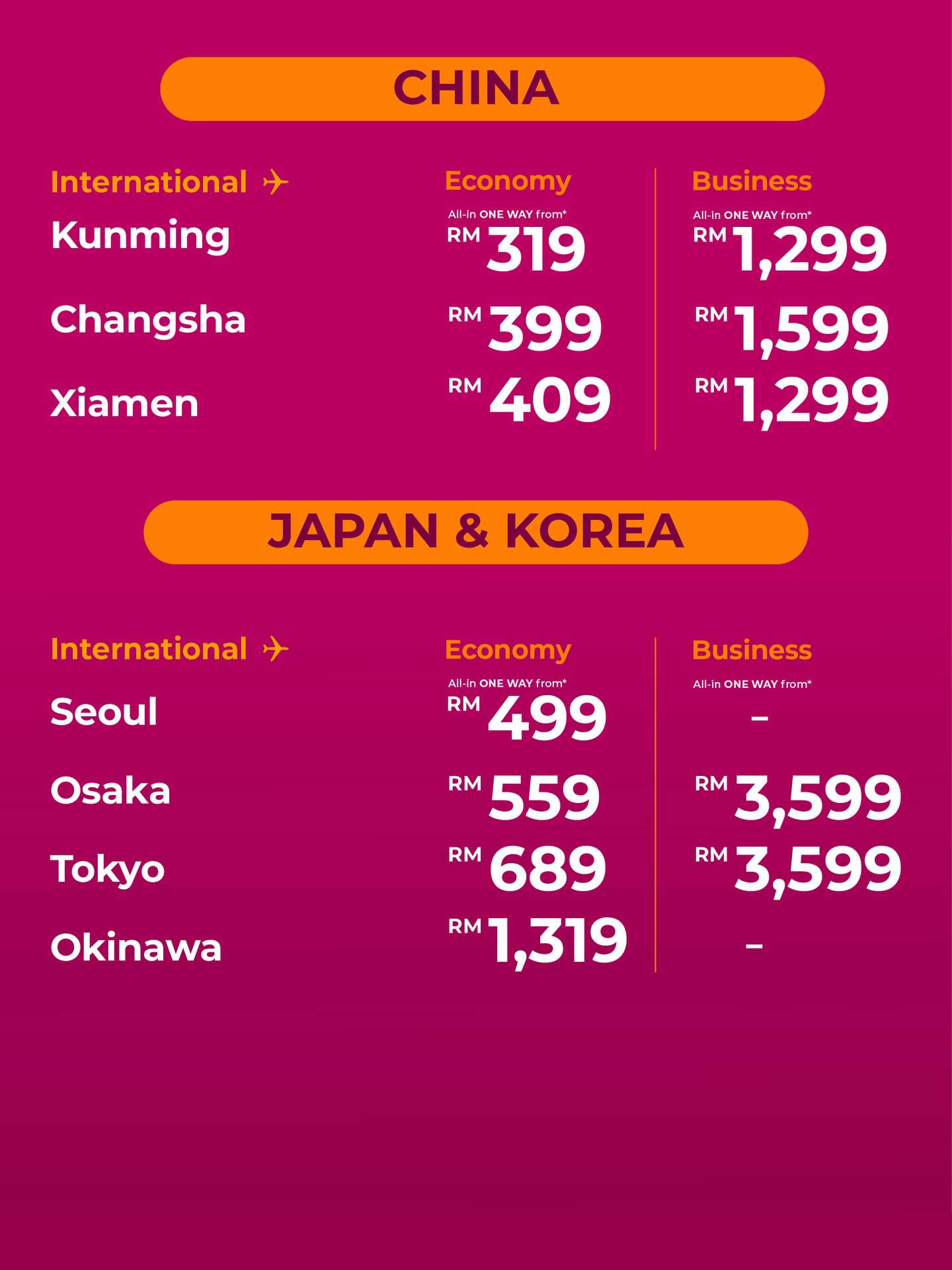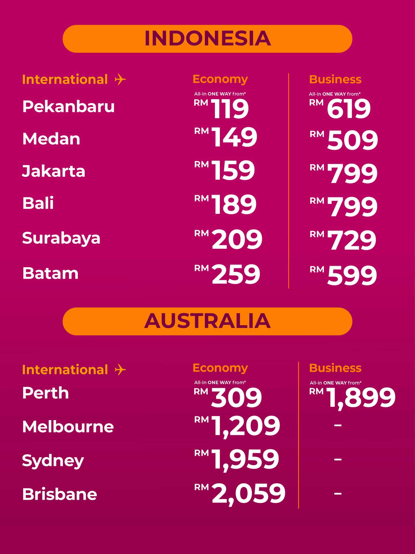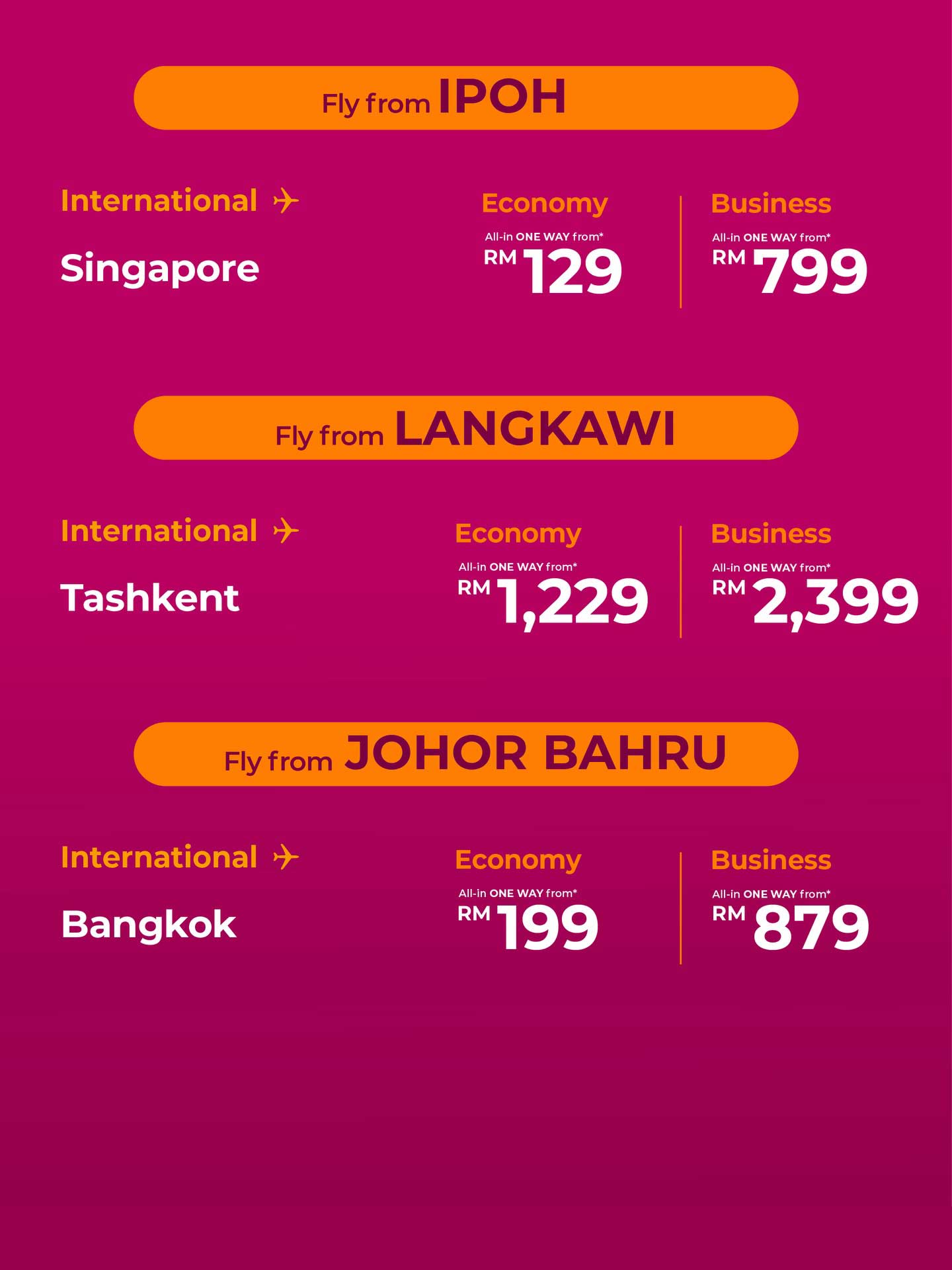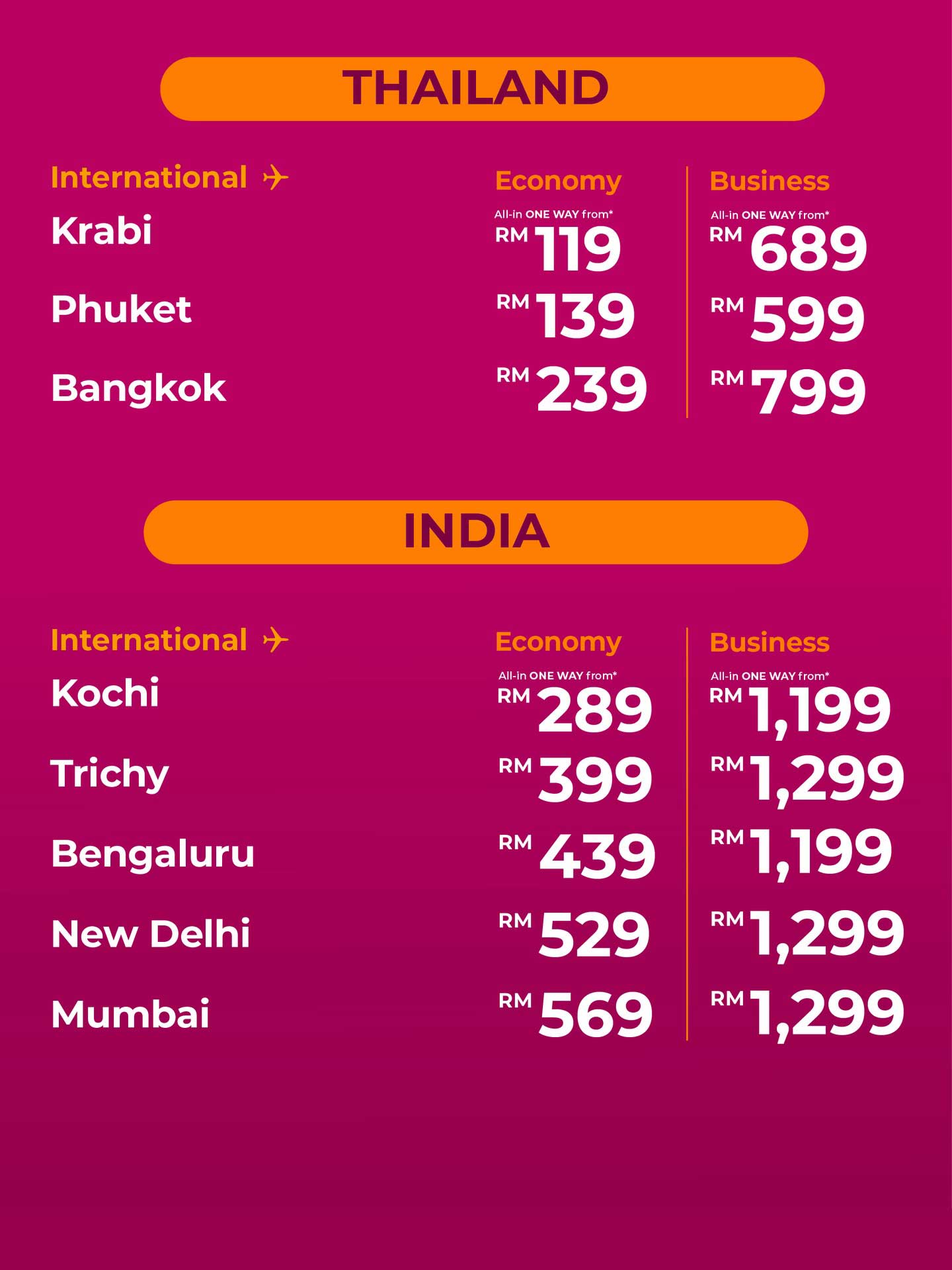 | Promo fares subject to seats availability. | |
