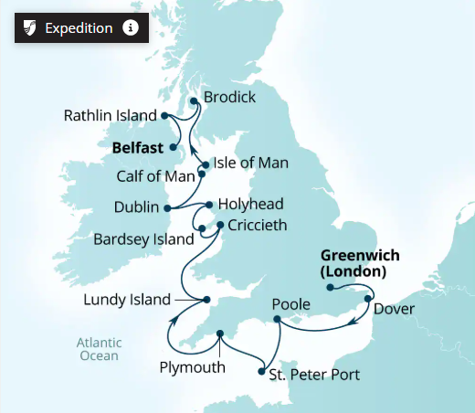Seabourn Venture | Jun 7 – 19, 2027 Departs: Greenwich (London), England Arrives: Belfast, Northern Ireland, UK Fares from US$10,898* |